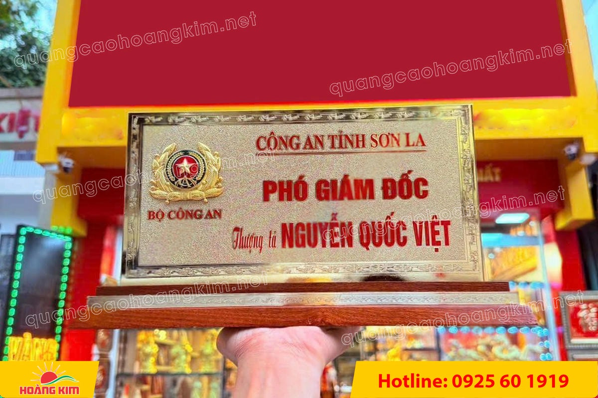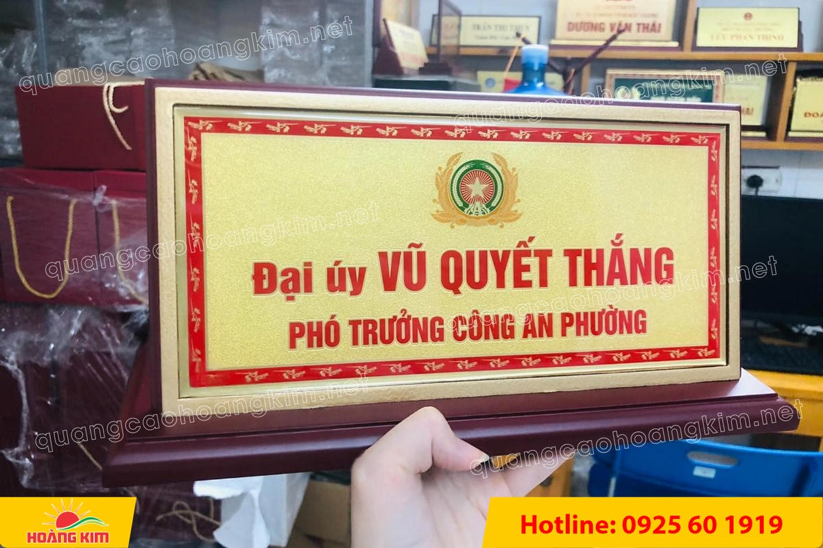Có rất nhiều lý do để khách hàng tin tưởng và hài lòng khi đặt làm biển tên chức danh công an tại Quảng cáo Hoàng Kim :
