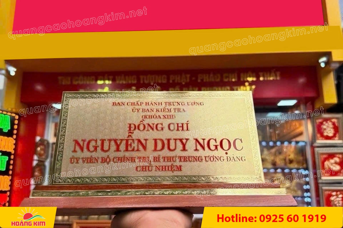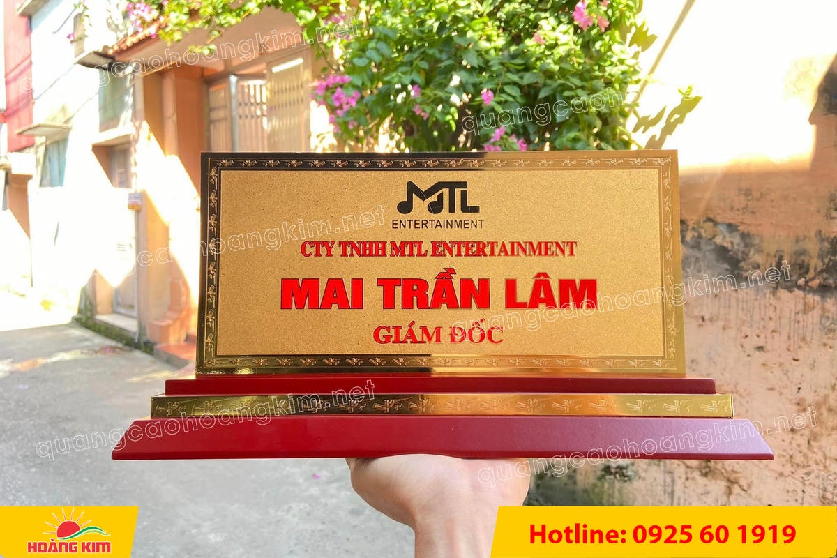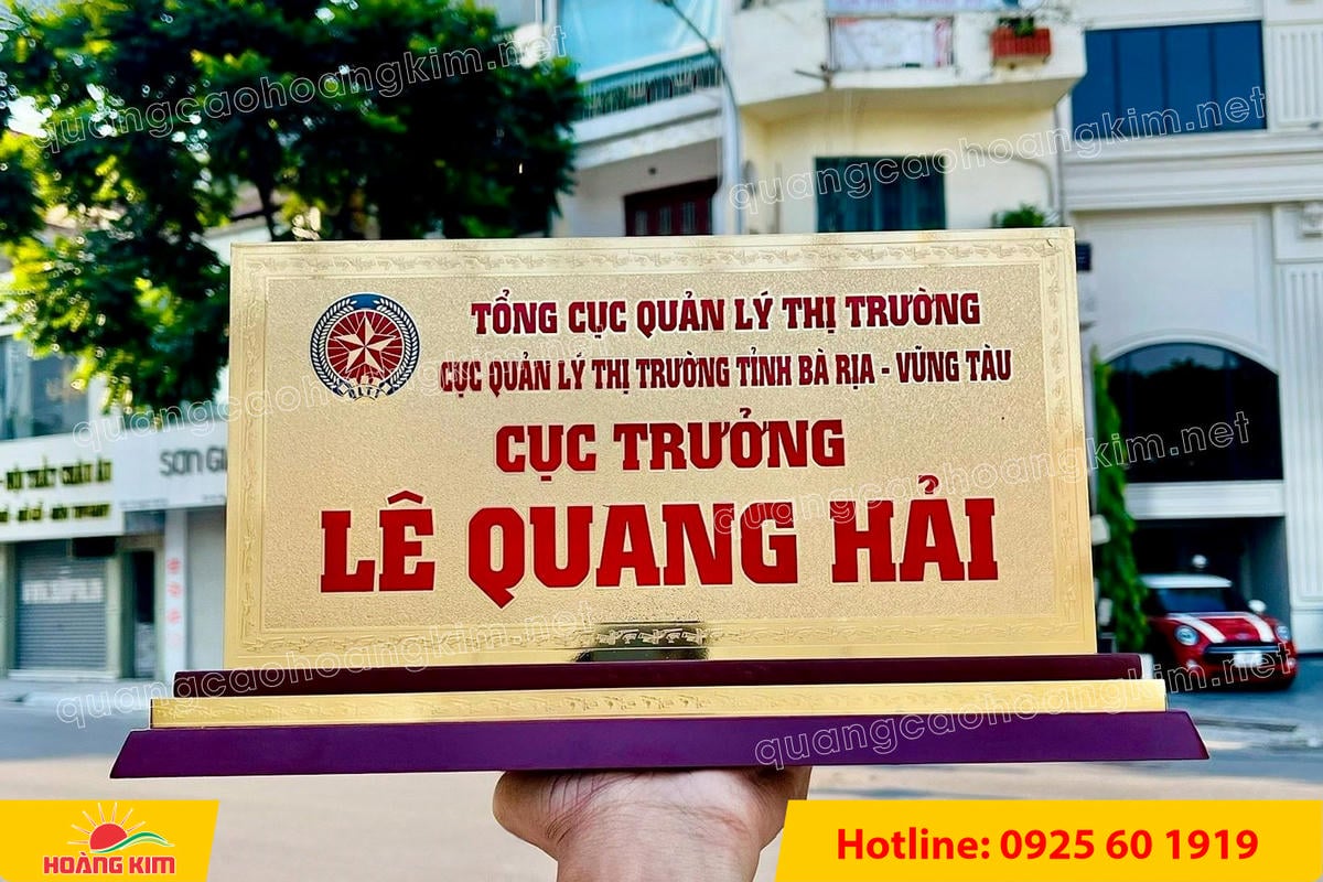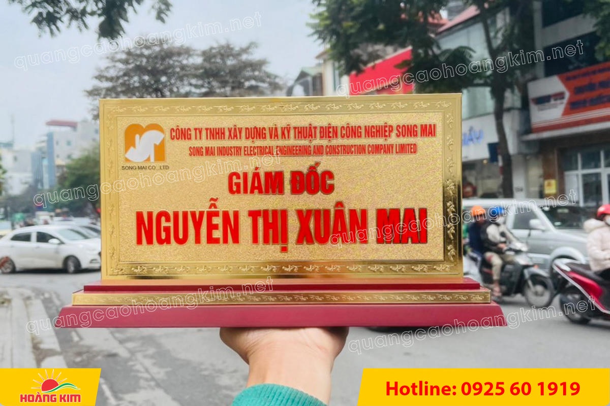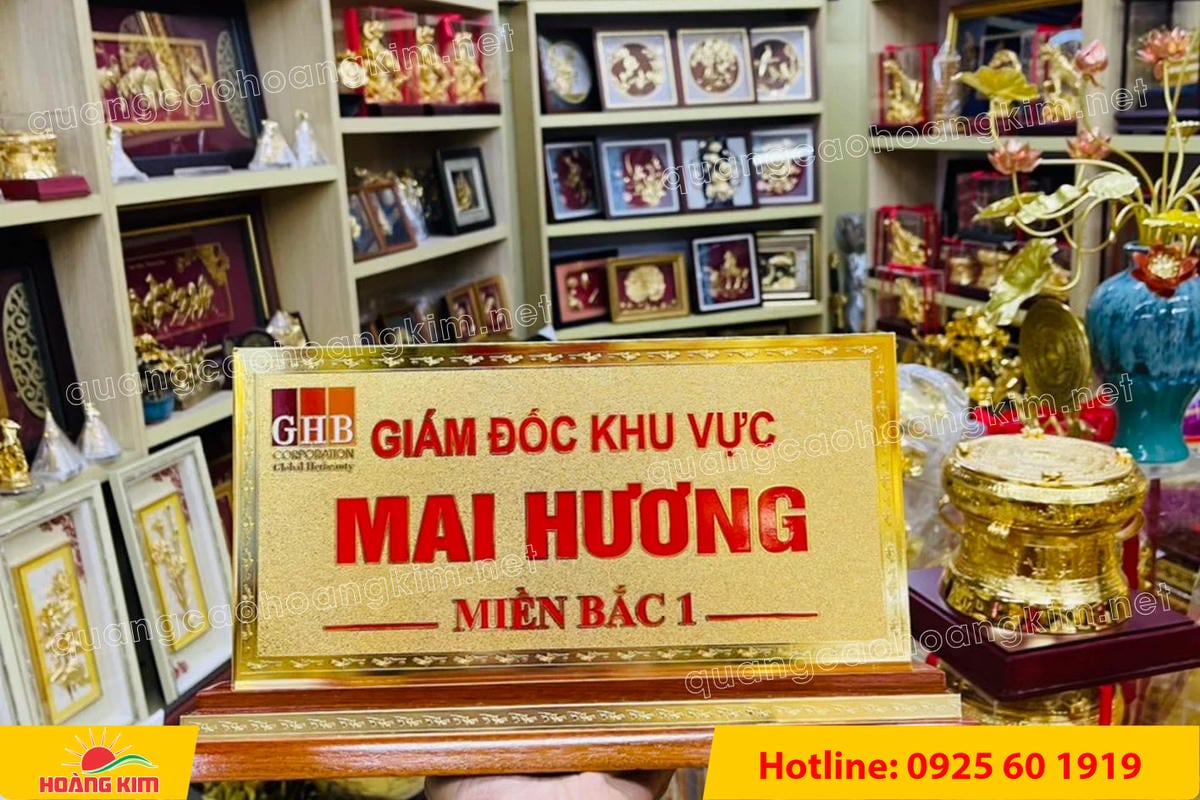 Nếu anh/chị đang cần biển chức danh mạ vàng 24K khổ lớn 15x30cm sang trọng, bền đẹp, hãy liên hệ ngay Hoàng Kim để được tư vấn và báo giá tốt nhất.