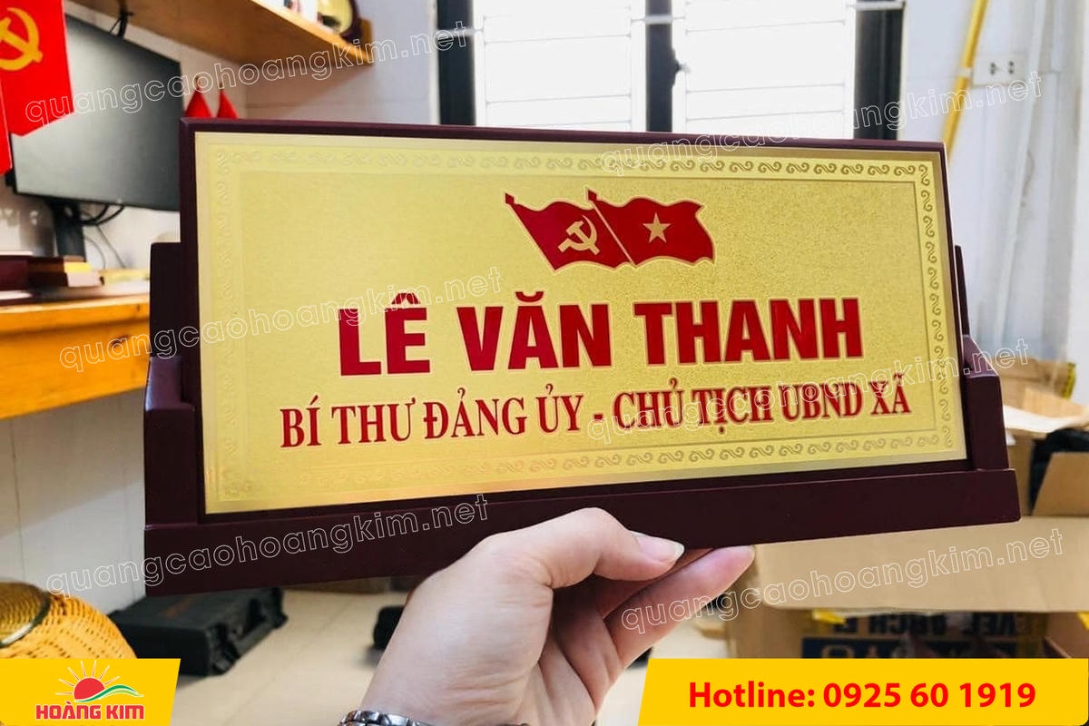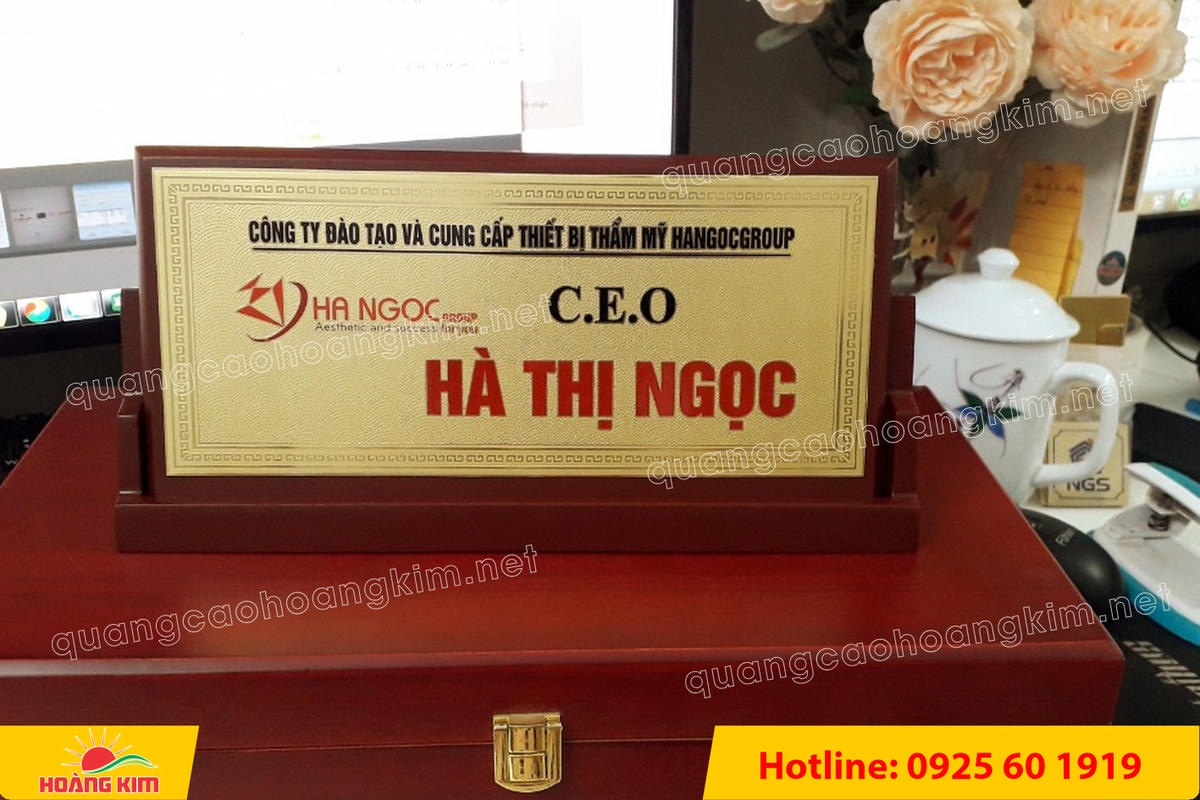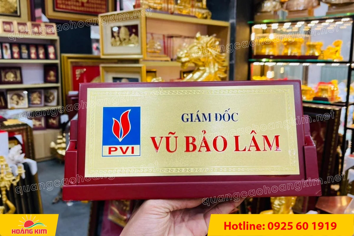 Biển chức danh mặt đồng đế gỗ là dòng sản phẩm cao cấp chuyên dùng cho giám đốc, tổng giám đốc, trưởng phòng và các vị trí lãnh đạo. Không chỉ giúp hiển thị rõ thông tin, sản phẩm còn góp phần nâng tầm hình ảnh doanh nghiệp, tạo sự chuyên nghiệp và uy tín trong mắt đối tác.