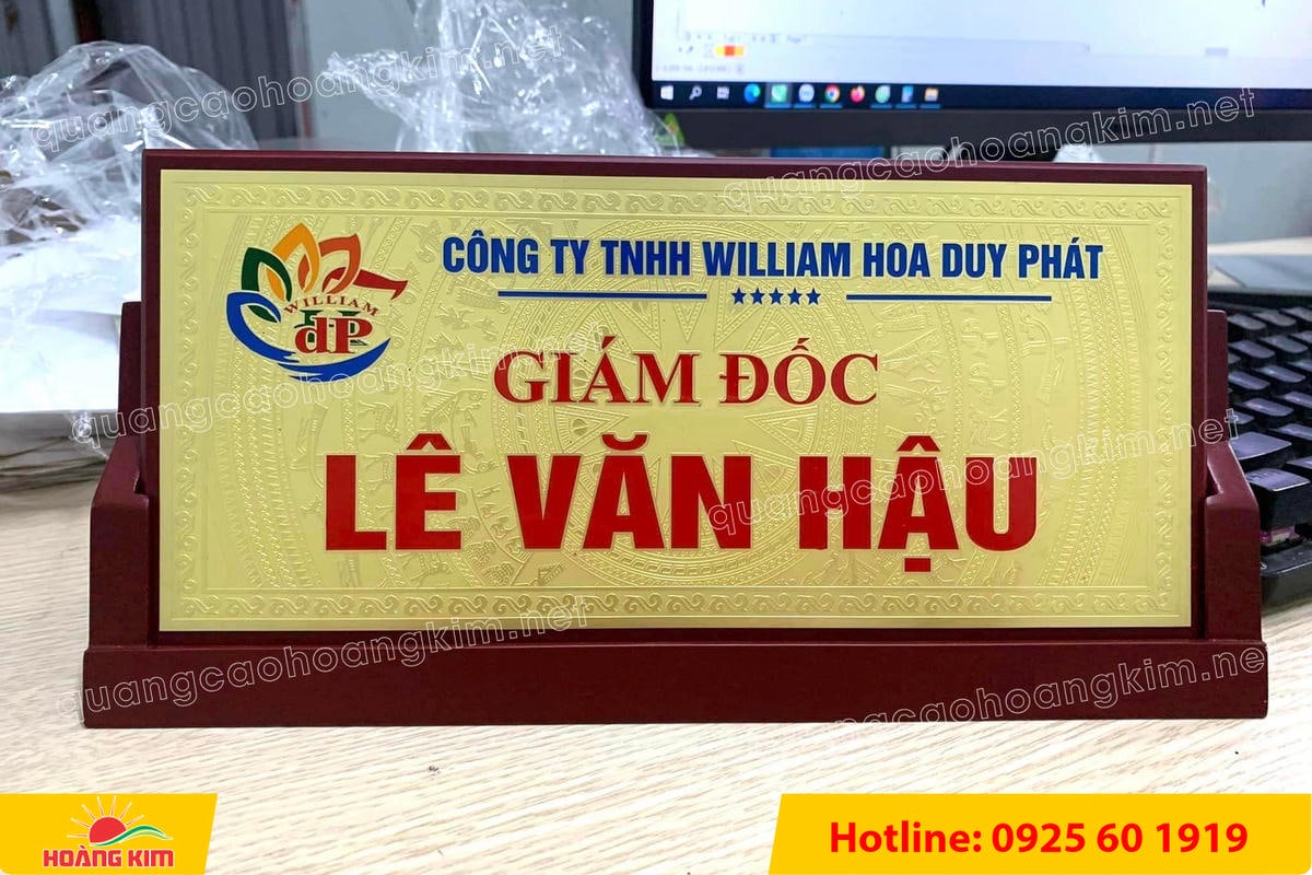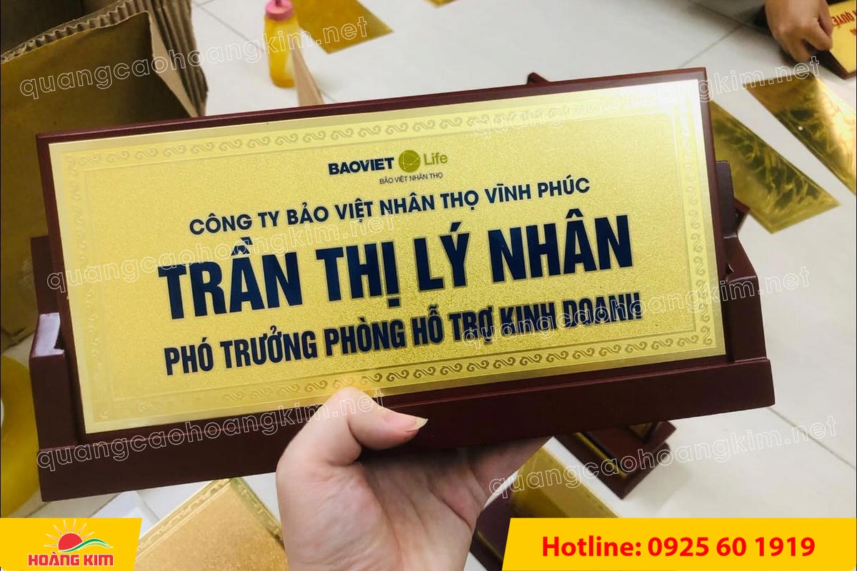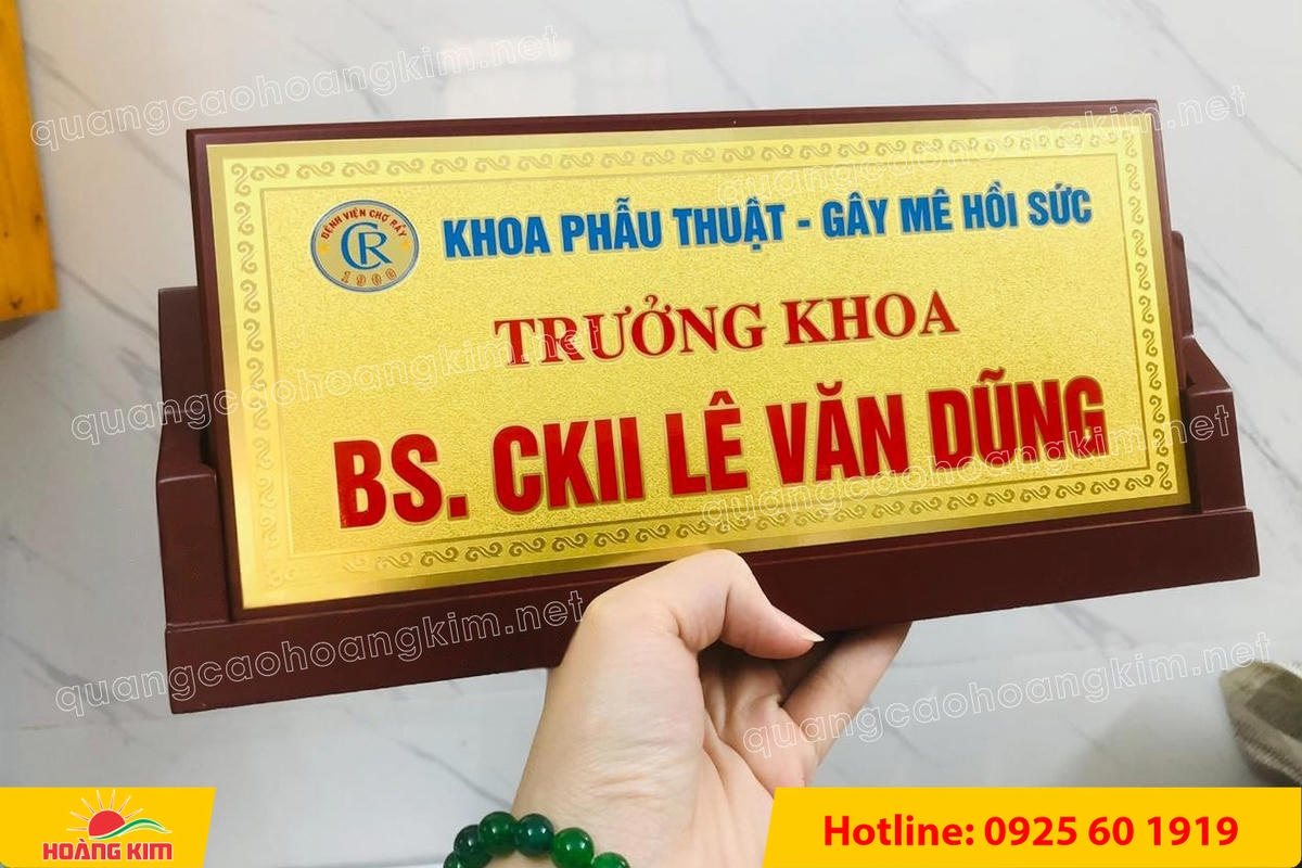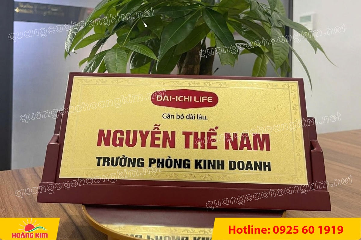 Với thiết kế mặt đồng vàng ánh kim kết hợp đế gỗ chắc chắn, mẫu biển chức danh này luôn là lựa chọn hàng đầu cho các văn phòng hiện đại.