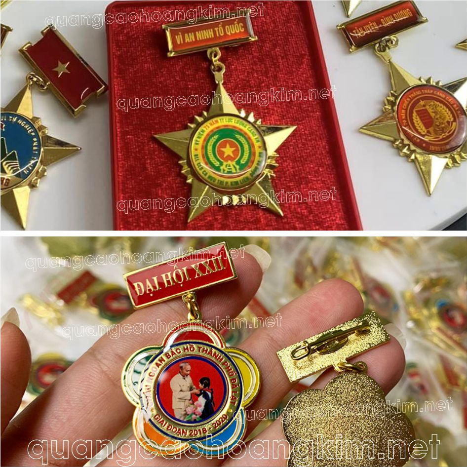 – Hình dáng: Có nhiều hình dáng khác nhau như ngôi sao, hình tròn, hình chữ nhật, hoặc biểu tượng đặc trưng của tổ chức.